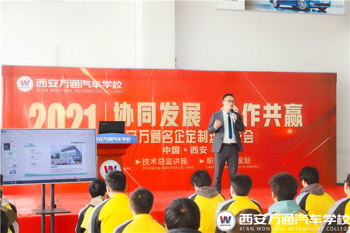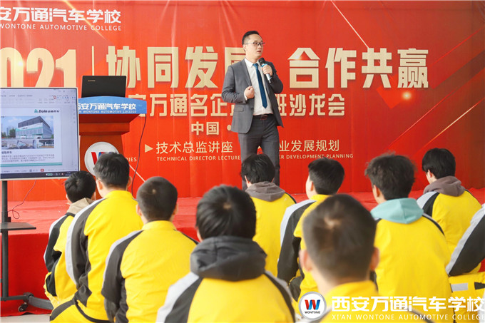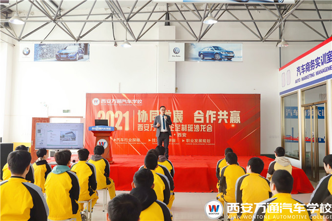 為探析市場行業發展前景,讓學生提前樹立創業意識,2021西安萬通高端車名企定制班企業講座在報告廳二樓正式開課,鉑勒養車(BOLE)陜西區域總監宋德平來到西安萬通為學子們講學!
