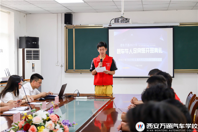 為了進(jìn)一步強(qiáng)化畢業(yè)生崗前學(xué)習(xí)意識(shí),提升畢業(yè)生上崗后的各項(xiàng)素質(zhì)能力,6月29日,由西安萬通汽車學(xué)校和靚車牛人汽車美容連鎖共建的2021年校企崗前強(qiáng)化培訓(xùn)班順利舉行。參加此次開班典禮的校領(lǐng)導(dǎo)分別是校長(zhǎng)助理鄭助及學(xué)生處、教務(wù)處、創(chuàng)就業(yè)指導(dǎo)中心負(fù)責(zé)人,蒞臨典禮的嘉賓有靚車牛人汽車美容連鎖龍總和培訓(xùn)主任孟主任。