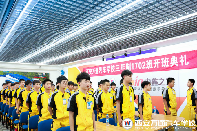2017年8月3日19點整,西安萬通汽車學校汽車技術服務與運營工程師2+1大專1702班開班典禮正式開始。出席此次開班典禮的嘉賓主要有教務處李剛主任、創就業指導中心魏剛主任等校領導以及2+1大專1702班全體師生。