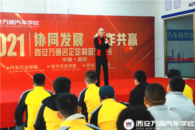 自去年畢業后,張長雨在學校的幫扶政策下,成功創辦了同德美車行,現在年入55W+!他的事業從無到有,從成立到壯大,點點滴滴都浸潤著在西安萬通學習成長的汗水,以及萬通創業幫扶體系的影響。所以他的現身說法,講述創業之道,是摸得著看得見的經驗,更能讓學生們信服和學習。