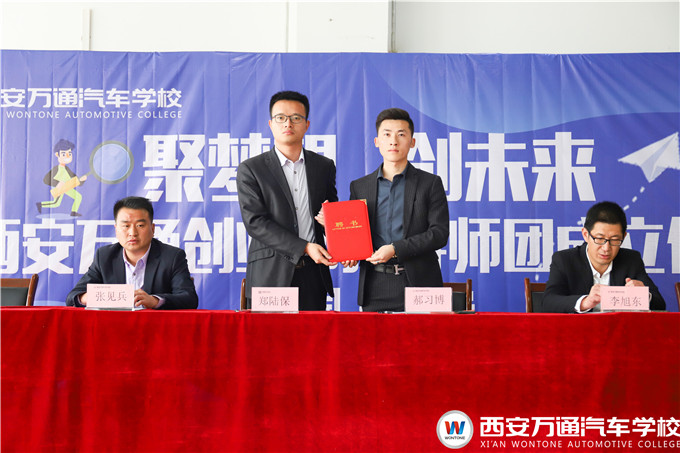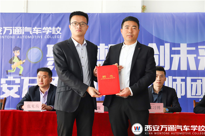 隨后,西安萬通校長助理鄭助代表我校向陜西義博優創商貿有限公司郝習博總經理及行業冠軍導師張軍利分別頒發了創業導師聘書,宣布西安萬通創業導師幫扶團正式成立!