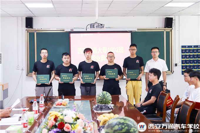 隨后教務處梁主任向優秀畢業生頒發了榮譽證書,激勵他們更上一層樓。西安萬通汽車學校校長助理鄭助向學子們依次頒發了畢業證書,并發表了重要講話。