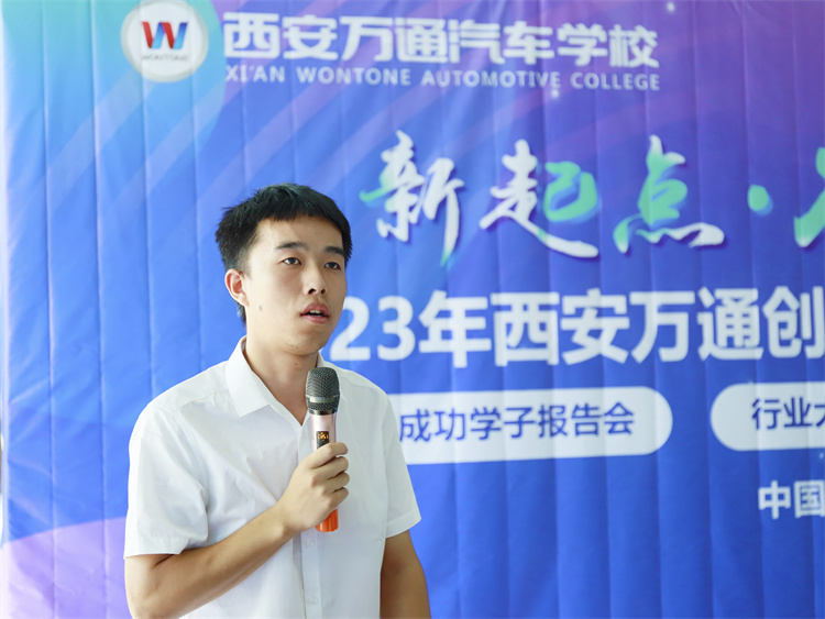 蘭朝朝畢業后,在學校的幫扶政策下,成功創辦了眾友盟汽車服務中心,現在年入55W+!他的事業從無到有,從成立到壯大,點點滴滴都浸潤著在西安萬通學習成長的汗水,以及萬通創業幫扶體系的影響。所以他的現身說法,講述創業之道,是摸得著看得見的經驗,更能讓學生們信服和學習。