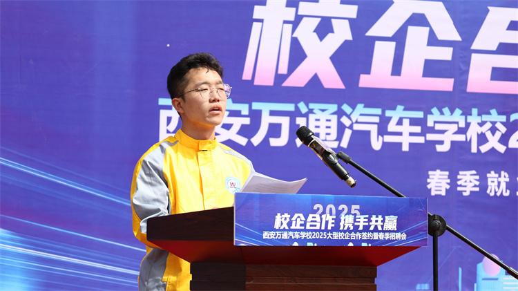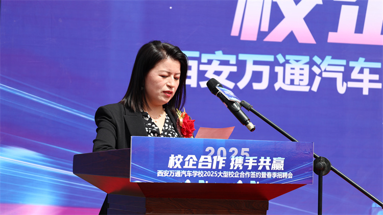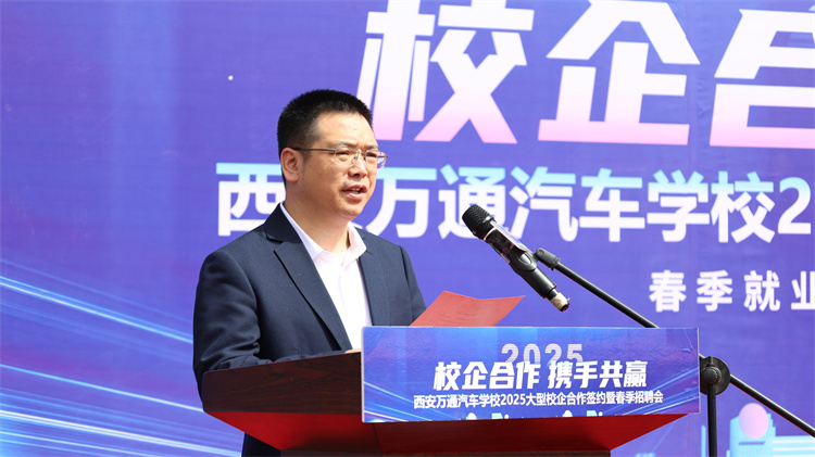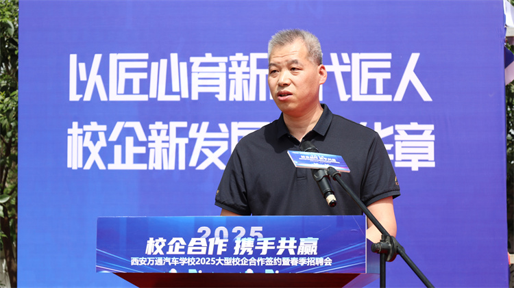 西安萬通汽車學校校長李登寶在致辭中強調:"西安萬通校長李登寶表示:此次活動是我們對于“校企合作”的實質性落地,也是踐行“職業教育就是就業教育”為學生的高質量就業打下堅實的基礎,未來我們希望更多優質企業走進來共建校企訂單班,更多學生走出去到高質量企業穩定就業,辦學37年來,我們始終以'訂單式培養'為核心,累計為行業輸送數萬名技能人才。今天的簽約不僅是合作延續,更是對培養社會所需的高質量技術人才的積極回應。