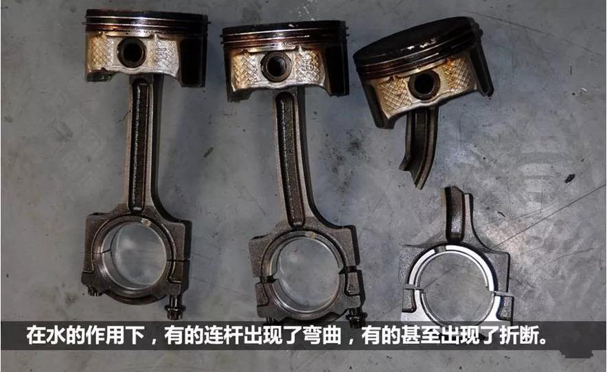 車輛一旦泡水,二次啟動(dòng)就會(huì)造成發(fā)動(dòng)機(jī)進(jìn)水,而水在氣缸內(nèi)不可壓縮,這樣就會(huì)造成發(fā)動(dòng)機(jī)內(nèi)部活塞連桿組中的活塞被頂彎。