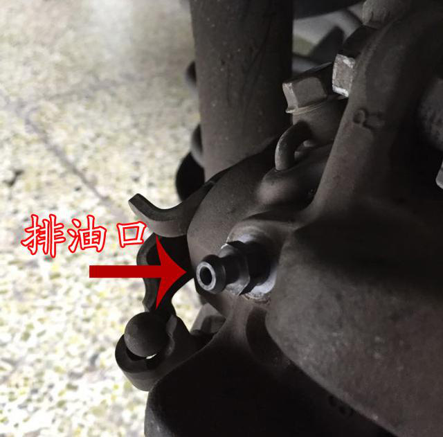 第六步 去車內開始踩剎車。如果是兩人操作的話,可一人去踩剎車,一人觀察放油。注意橡膠管內剎車油的顏色,舊油顏色較深,新油顏色較淺,如發現橡膠管內排出的已是較淺的新油則此輪的換油已完成。停止踩剎車,然后接下來三個輪胎反復此操作。