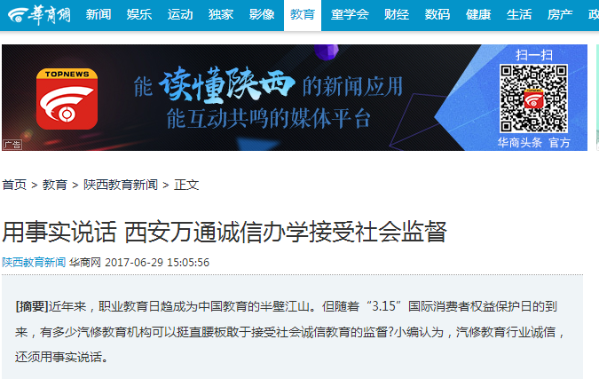 【華商網】用事實說話 西安萬通誠信辦學接受社會監督