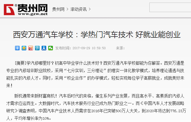 西安萬通就業網絡覆蓋全國。集團辦學、資源共享、就業渠道廣,讓優質教育的陽光灑遍每一個角落,助力每一名學子成功邁入汽修技術精英,實現高薪就業,成功創業,筑造精彩輝煌人生。