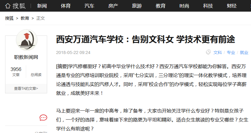 據了解,會計、外語是傳統的女生專業,但是就因為很多人選擇,造成就讀人數過多,將來求職競爭非常激烈。其實有些熱門專業,對女生需求大,卻還沒有很多女生選擇,會是更好的選擇。比如在就業專業受歡迎報告中提到的汽修專業,隨著汽車行業的吃香,女生學汽修,前途光明,未來就業更有保障。