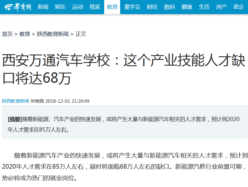 西安萬通采用這種特色鮮明的教學模式,使學校的新能源人才培養與汽車產業發展緊密銜接,促進校企聯動,建立新能源汽車專業人才培養基地,滿足區域經濟發展和新能源人才供給,這對于我國新能源產業的發展提供了一份技能人才的保障。