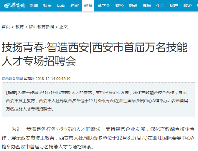 【華商網(wǎng)】西安市首屆萬(wàn)名技能人才專場(chǎng)招聘會(huì)