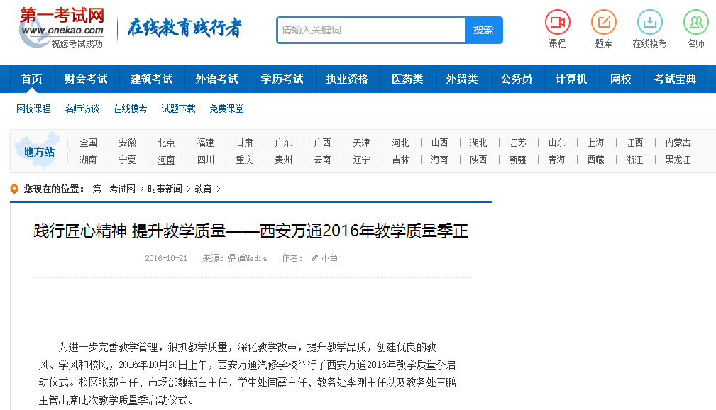 【第一考試網】踐行匠心精神 提升教學質量 ——西安萬通2016年