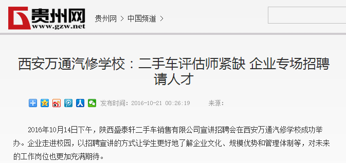 【貴州網】西安萬通汽車學校學汽修技術創業怎么樣