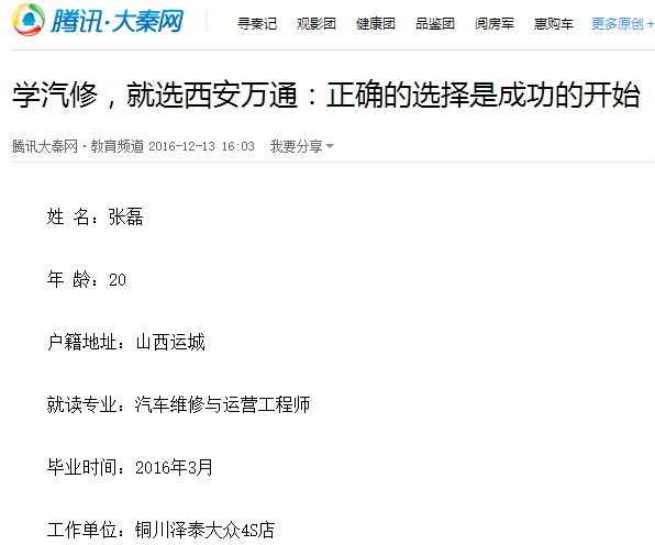 【大秦網(wǎng)】西安萬通汽車學(xué)校品牌隆重升級