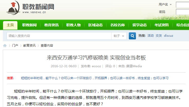 【職教新聞網】來西安萬通學習汽修鈑噴美 實現創業當老板