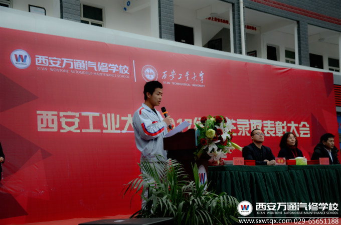 這次表彰大會主要是對2016年度在高等院校招生全國統一考試中取得優異成績的36名西安萬通錄取學生代表予以表彰,激勵他們在求學的道路上繼續努力前進。在表彰大會上,首先由本次成考中取得優秀成績的學生代表范剛強發言,他以自身為實例,說出了自己在職業規劃上的思考,通過大師巡講得到闞有波教授的點撥,一步步堅定自己的汽修夢想,還表示自己要惜時如金不斷努力,爭獲大專學歷,為自己后續人生創造輝煌打好基礎。