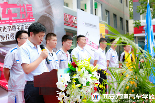 在出征儀式上,梁奇老師首先宣讀了本屆“萬通杯”大賽的總決賽安排,總決賽計劃2天時間開展,于7月7日進行汽車鈑金修復、汽車噴涂以及汽車美容3個項目的比賽,于7月8日進行雙人快修保養、汽車故障診斷與排除2個項目比賽。
