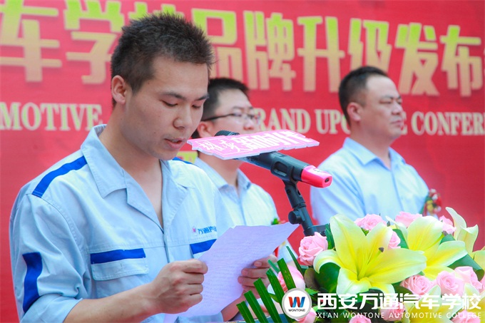 在第七屆“萬通杯”全國汽車維修技能大賽上斬獲全國一等獎的楊龍同學作為學生代表也進行了發(fā)言,楊龍講到,在西安萬通有良好的學習環(huán)境、負責的教學老師、充足的實訓機會,讓學生能真正學到實戰(zhàn)技能。楊龍同學也向所有同學發(fā)乎呼吁,希望每位同學能認真學習,積極實訓,珍惜時間,學有所成,不負學校、老師的鼓舞,不負家人的厚望,不負自己的付出。