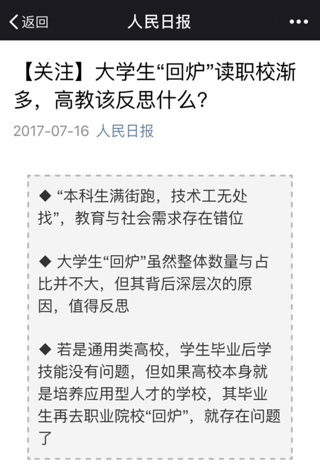 全民關(guān)注“大學(xué)生回爐讀職校”,你怎么看?