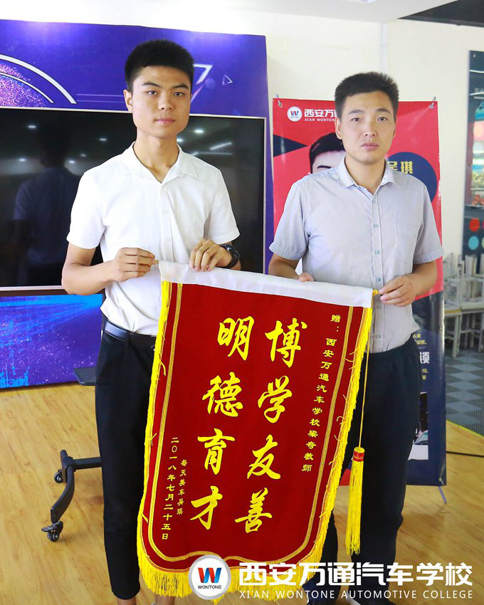最后,趁此再回母校之際,吳琦也為母校送來了一只錦旗,“博學(xué)友善 明德育才”,這不僅是對西安萬通教學(xué)質(zhì)量的認可與肯定,也是對母校感激之情一種表達。