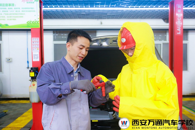 可能是由于工作中經(jīng)常為員工做培訓(xùn),沈老師慢慢就對“授人以漁”這種事情有了好感,并向往成為一名傳授新能源汽車技術(shù)的老師。最終,沈老師邁出了這一步,他辭去了國企的工作,轉(zhuǎn)而以較高的綜合素質(zhì),被錄用為西安萬通汽車學(xué)校的新能源教學(xué)老師,這份工作使沈老師很是滿意,并暗下決心一定做到無愧于心。