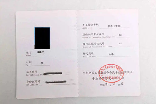 二手車鑒定評估師注冊證(三級)