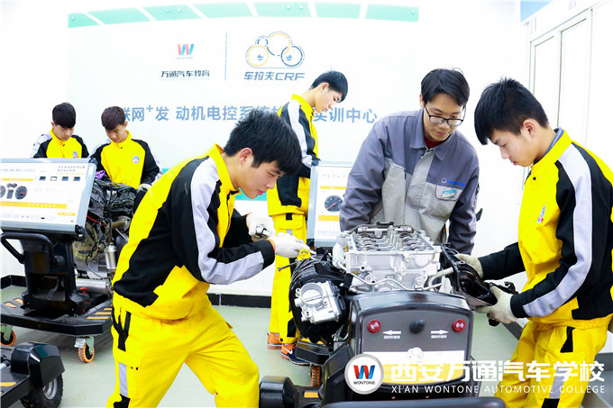專業師資團隊。這是一個非常重要的因素。畢竟這是一個真正學動手能力的專業,有好的老師,才能教出好的學生。西安萬通汽車學校擁有一支由汽修專家、一線汽修工程師、經驗豐富的汽車維修技師、汽車研發員組成的實力雄厚的高水平師資隊伍。他們扎根于一線,有著豐富的教學經驗。以嚴謹的教研態度、高質量的教學方法,確保每一名學生都能學有所長、學有所專、學以致用。