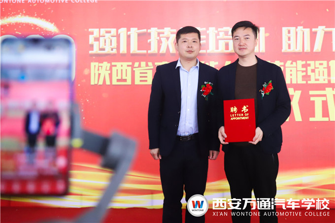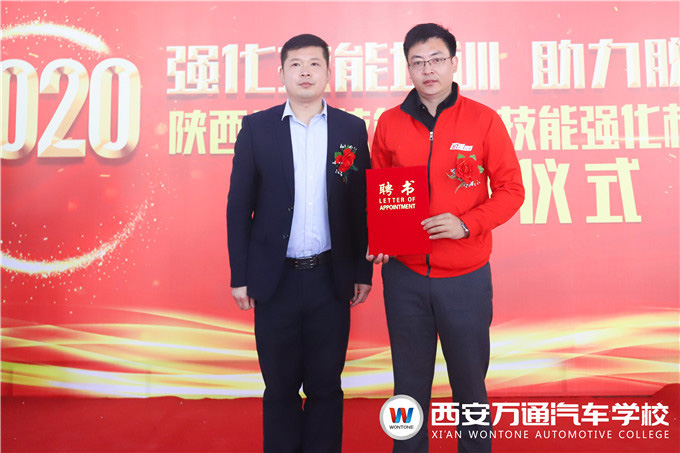 現場,校長助理爨助代表西安萬通汽車學校聘任靚車牛人、卡爾名車、百援精養三家企業總監為我校創就業幫扶指導專家,將市場人才需求與人才培養模式相結合,為學生創業、就業提供經驗指導和具體幫扶。