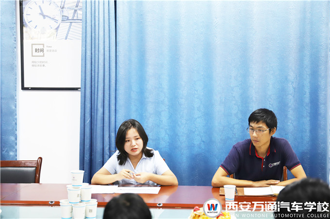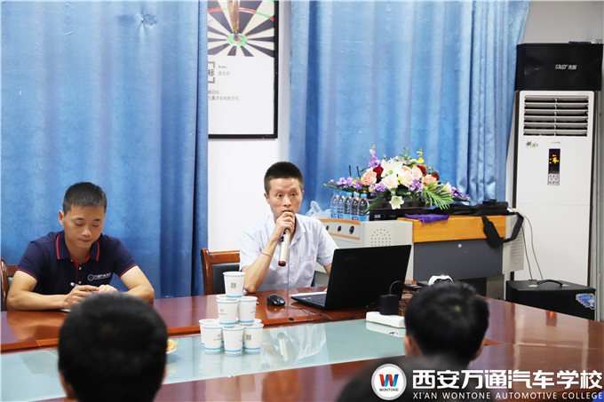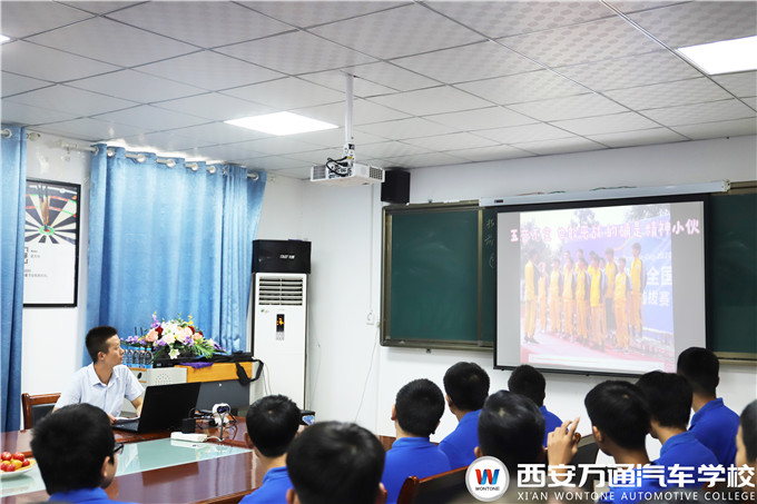 在熱烈掌聲中,班主任王老師對同學們加入西安萬通表示了熱烈歡迎,并通過兩段精心剪輯的視頻展現了班級學生的風貌和學生家長溫暖的鼓勵,以此激勵同學們。隨后,金牌教師王老師表示開班典禮標志著新學期新生活的開始,選擇萬通是他們第一步正確的選擇,在未來的學習生活中大家一定要聽從老師安排,在校認真學習,為自己打下堅實的技能基礎,成就精彩的汽車夢。