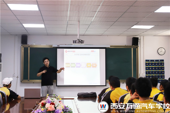 徐總對(duì)企業(yè)的概況、招聘崗位以及員工薪資構(gòu)成進(jìn)行詳細(xì)的介紹,隨后講到,從企業(yè)乃至整個(gè)汽車產(chǎn)業(yè)的從業(yè)人員現(xiàn)狀來看,中高級(jí)技術(shù)人才非常短缺,“高級(jí)藍(lán)領(lǐng)”已成為稀缺人才,汽車行業(yè)巨大的人才缺口也促使汽車專業(yè)將成為未來十年前景最好的專業(yè)之一。企業(yè)為了省心省力地招聘到“心儀”的人才,自然要與像西安萬通一樣品牌實(shí)力強(qiáng)、學(xué)生素質(zhì)高的職業(yè)院校的合作。最后,徐總鼓勵(lì)萬通學(xué)子們?nèi)绻行膬x的崗位一定要努力爭(zhēng)取,作為企業(yè)方非常希望吸納更多掌握先進(jìn)技術(shù)的新生力量。