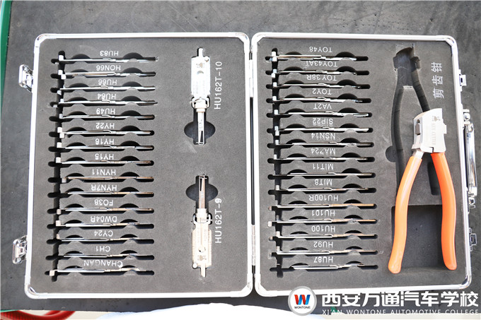 西安萬通汽車學(xué)校汽車配鑰匙專業(yè)從汽車鎖具基礎(chǔ)課程、汽車鑰匙開齒工具講解及使用、汽車遙控器講解以及生成、萬用表測量實(shí)踐、烙鐵、風(fēng)槍認(rèn)知及應(yīng)用、五大車系防盜匹配六個(gè)方面建成課程體系。五大車系真車實(shí)訓(xùn),行業(yè)大師手把手教學(xué),包教包會。