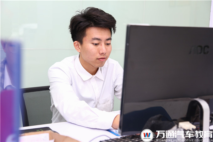 拆裝,修理玩具汽車是宋興從小的興趣愛好,當他第一眼來到萬通,就被學校的設備所吸引。學校學習汽修技術都是真車訓練,而且是市面上的熱門車型都能看到,他感覺比起上普通大專學的東西實用很多。