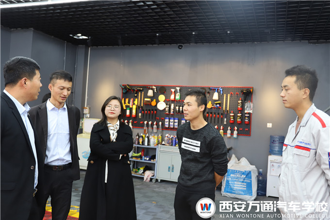 為鍛煉學生自主創業能力,培養學生系統掌握創業實戰技能,熟知創業經營管理等方面的知識,2020年10月20日,西安萬通汽車學校的教務處梁主管、創就業指導中心彭主管、美容班班主任張老師特攜有創業意向的新生學子來到萬通全國十佳創業示范店之一的車藝美汽車服務中心進行學習交流。車藝美汽車服務中心是西安萬通優秀畢業學子楊龍和武建永共同創辦的。