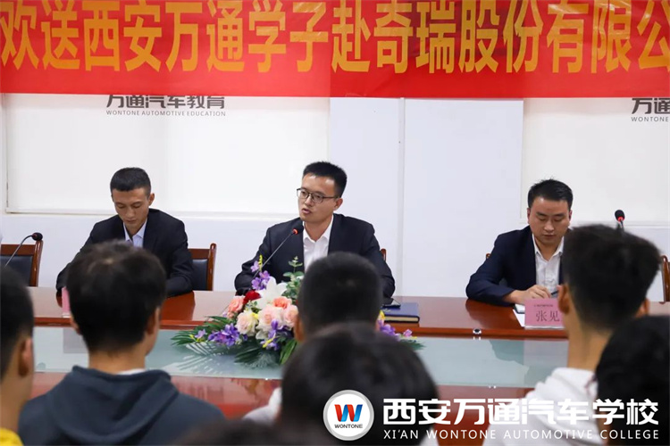 為了全面鍛煉學子的職業技能、幫助學子樹立正確的就業觀念,又一批萬通學子即將赴奇瑞汽車股份有限公司,頂崗實習!西安萬通校長助理鄭助、教務處梁主任、學生處張主任以及學生職業規劃中心彭主管、學生班主任秦鶴、王巖以及此次帶隊老師張毅一同召開歡送會,歡送學子們踏上新的人生征程。