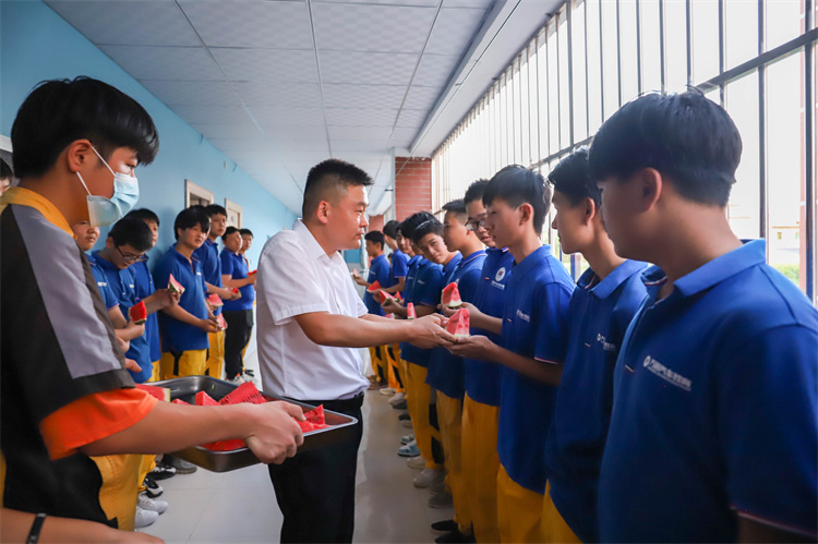 一塊塊西瓜送去了清涼,也拉進了學校領導、老師和學生之間的距離,增進了師生間的感情。一切為了學生,西安萬通汽車學院不辜負家長和學生的信任,為學生在校期間的生活和學習提供細致周到的服務,陪伴他們健康成長,以技逐夢。見面會中,韓校長與同學們親切交談,詢問新生入學后的住宿、就餐等生活情況,“剛來學校有什么不適應的地方嗎”“有什么困難及時和老師溝通”,面對韓校長親切的問候,同學們主動分享、積極回應。他還鼓勵大家相互交流、相互幫助;專注學業,樹立遠大志向;認真學習、積極參加各項活動,享受校園生活。