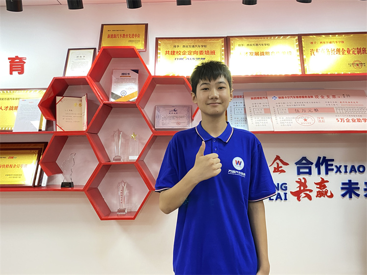 今年15歲的趙森是來自陜西省興平市的一名學生 現在是西安萬通汽車學校汽車檢測與維修工程師專業的一名學生。