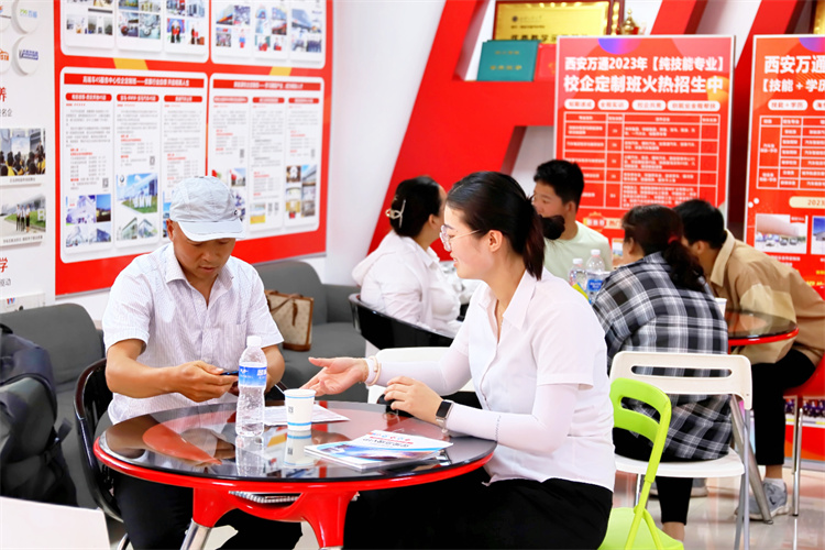 2023年陜西各地區中考結束后,一群考生家長早早來到西安萬通,計劃趕在中考成績出來前報讀到理想的專業,搶占禮物和助學金的名額。 今年,陜西省中考人數再創新高,升學壓力攀升。“學門好技術、選個好職校”成為更多孩子和家長的共識。盡管經過多番比對,擇校過程讓人身心疲憊,但西安萬通的咨詢中心現場依舊火爆。