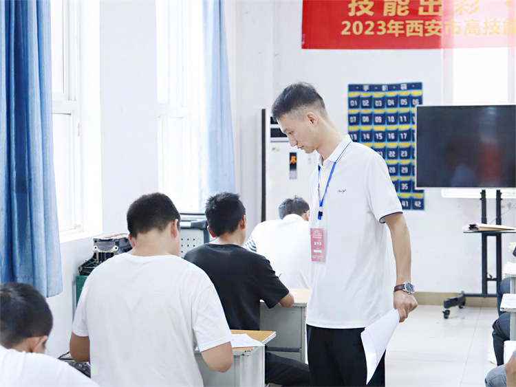 啟動儀式結束后參賽選手開始進入相應考場參與此次預賽的筆試考試。 參賽選手是由全省一千多所院校、企業層層選拔出一百多名參賽選手齊聚西安萬通一決高下,在一聲開考哨聲的響起監考老師宣讀考場紀律、密封卷公示、分發試卷,參賽選手開始了預賽的理論知識考核。
