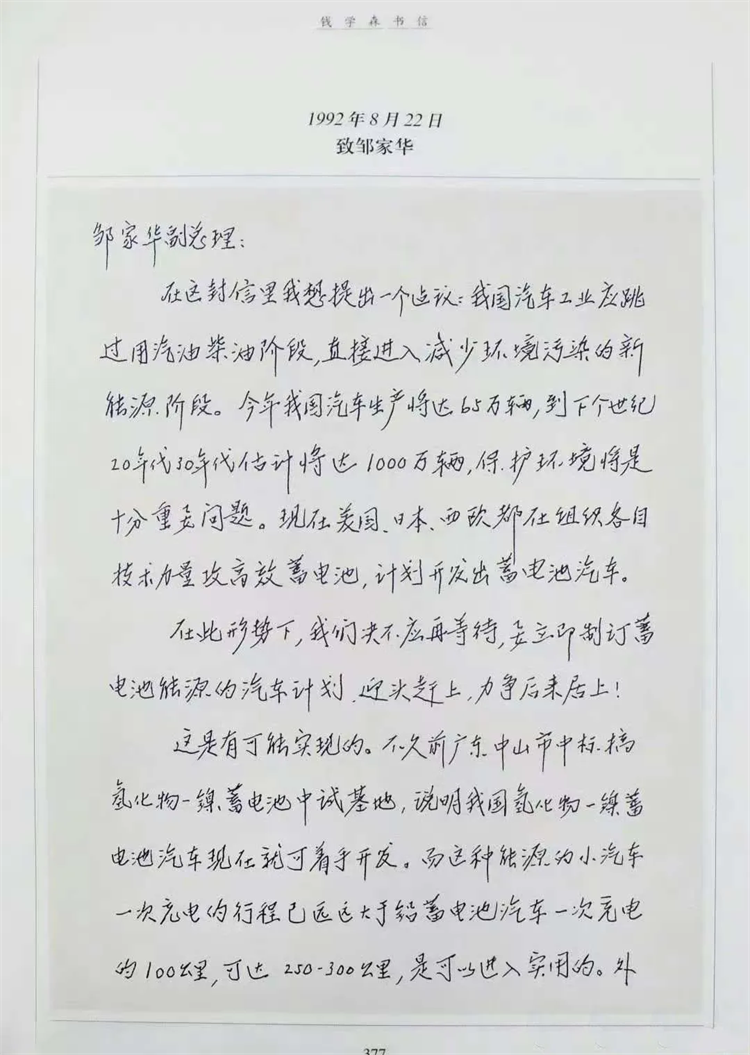 錢學森30年前手寫信曝光:關于新能源汽車的“神預言”